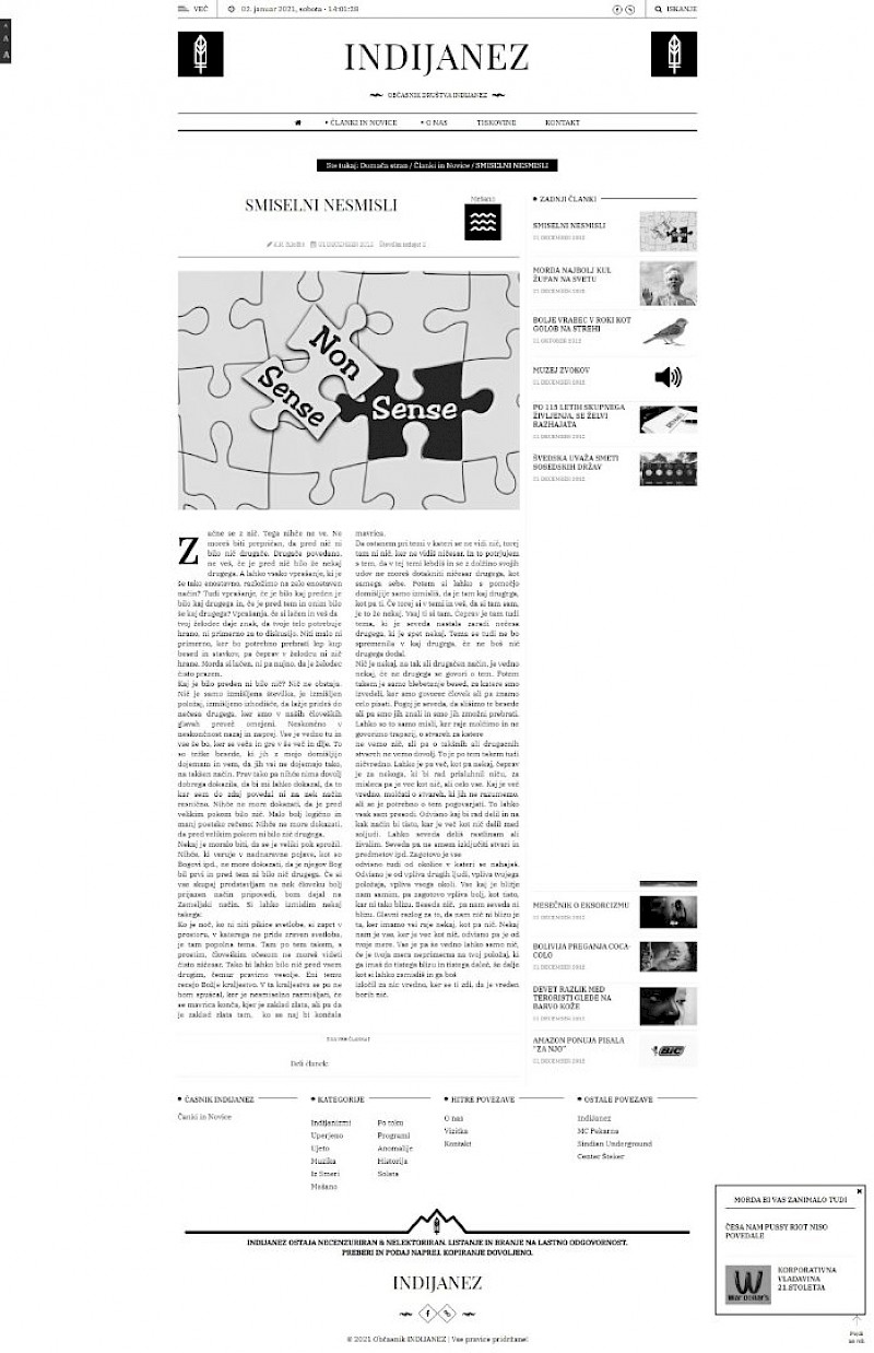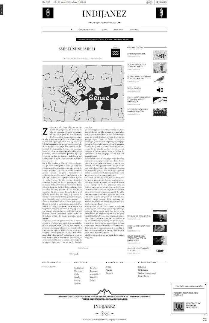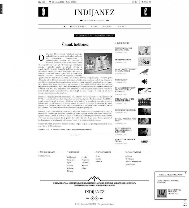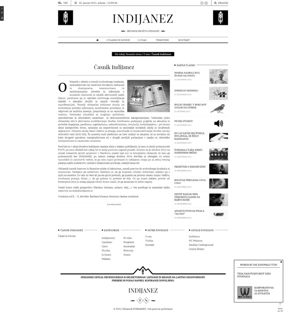 Spletna stran obČasnika IndiJanez. Spletna verzija "revije" Časnik IndiJanez.