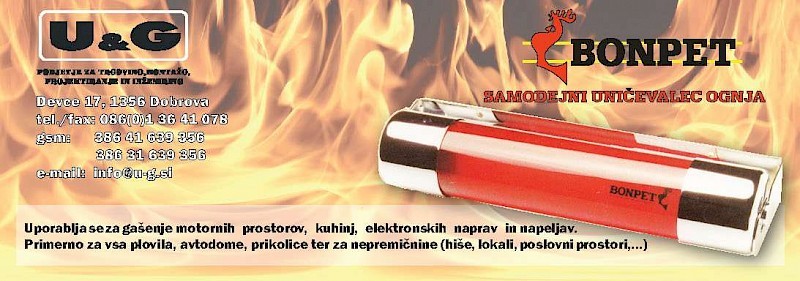 Oglas U & G - Bonpet gasilni sistem. Objavljen v reviji AVTO-DOM.